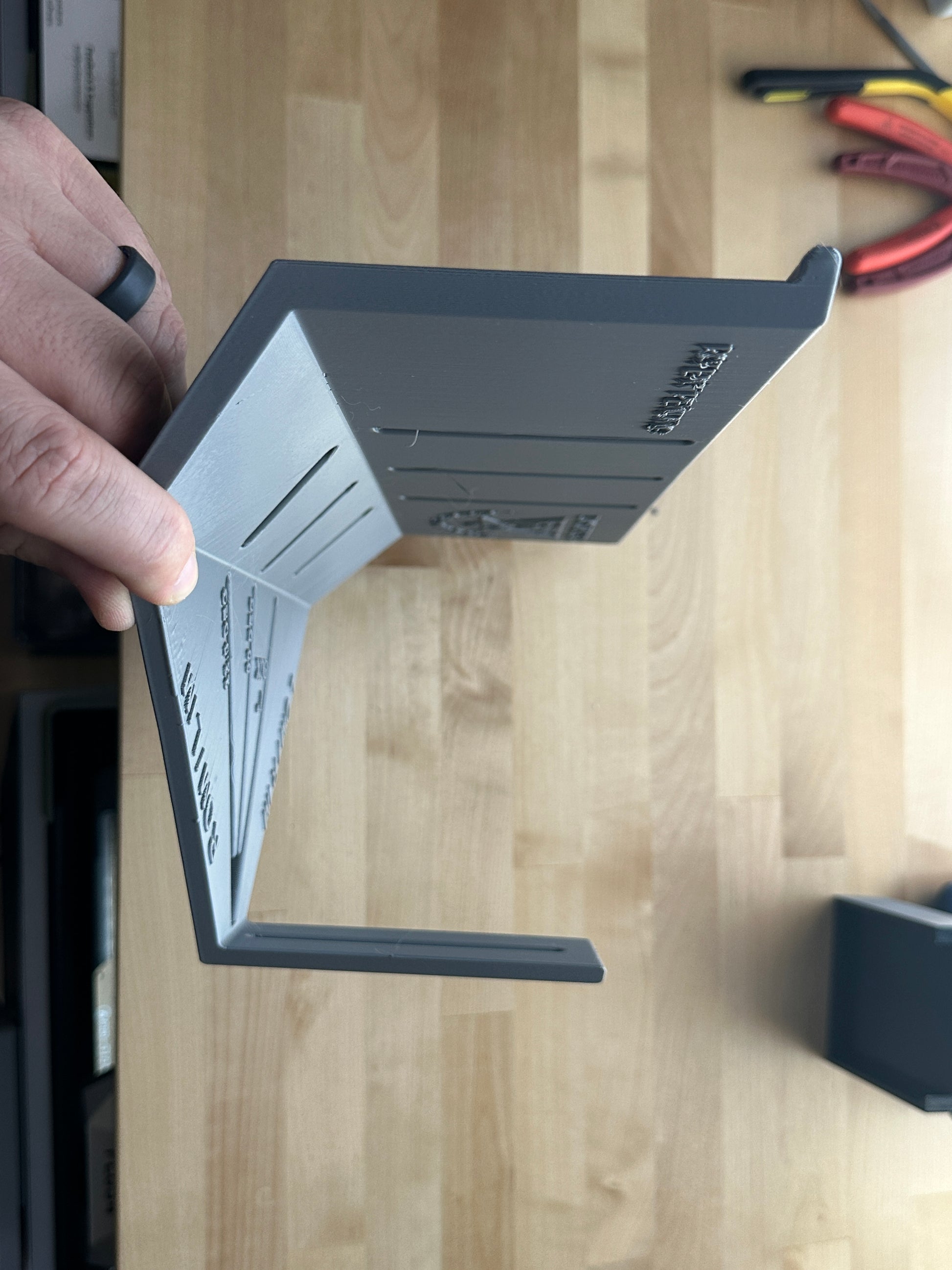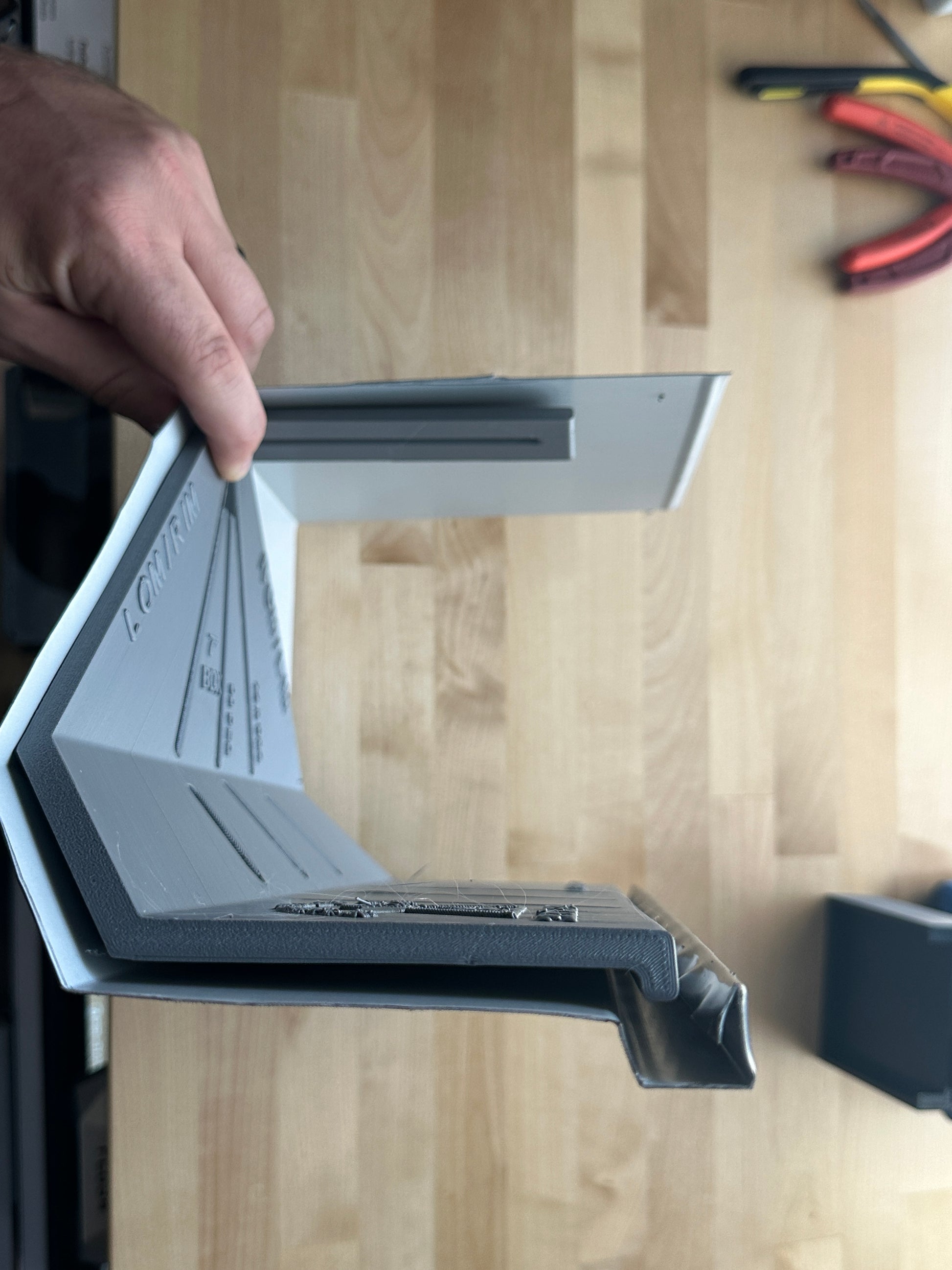 3D printed template for Gutter Miters. Will work with strip miters and hand tab miters. Template offers 45 deg, 22.5 deg, and 90 deg references. Works for inside and outside miters and is labeled on the template. Designed to be used inside the gutter to mark cut lines.
